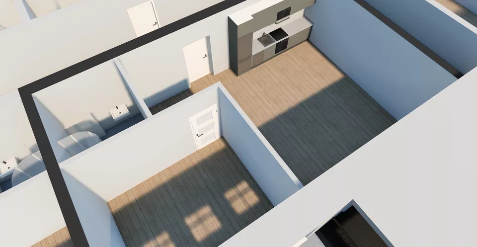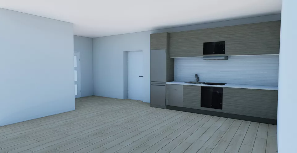 - pokój dzienny + aneks kuchenny – 34,58 m2 ;