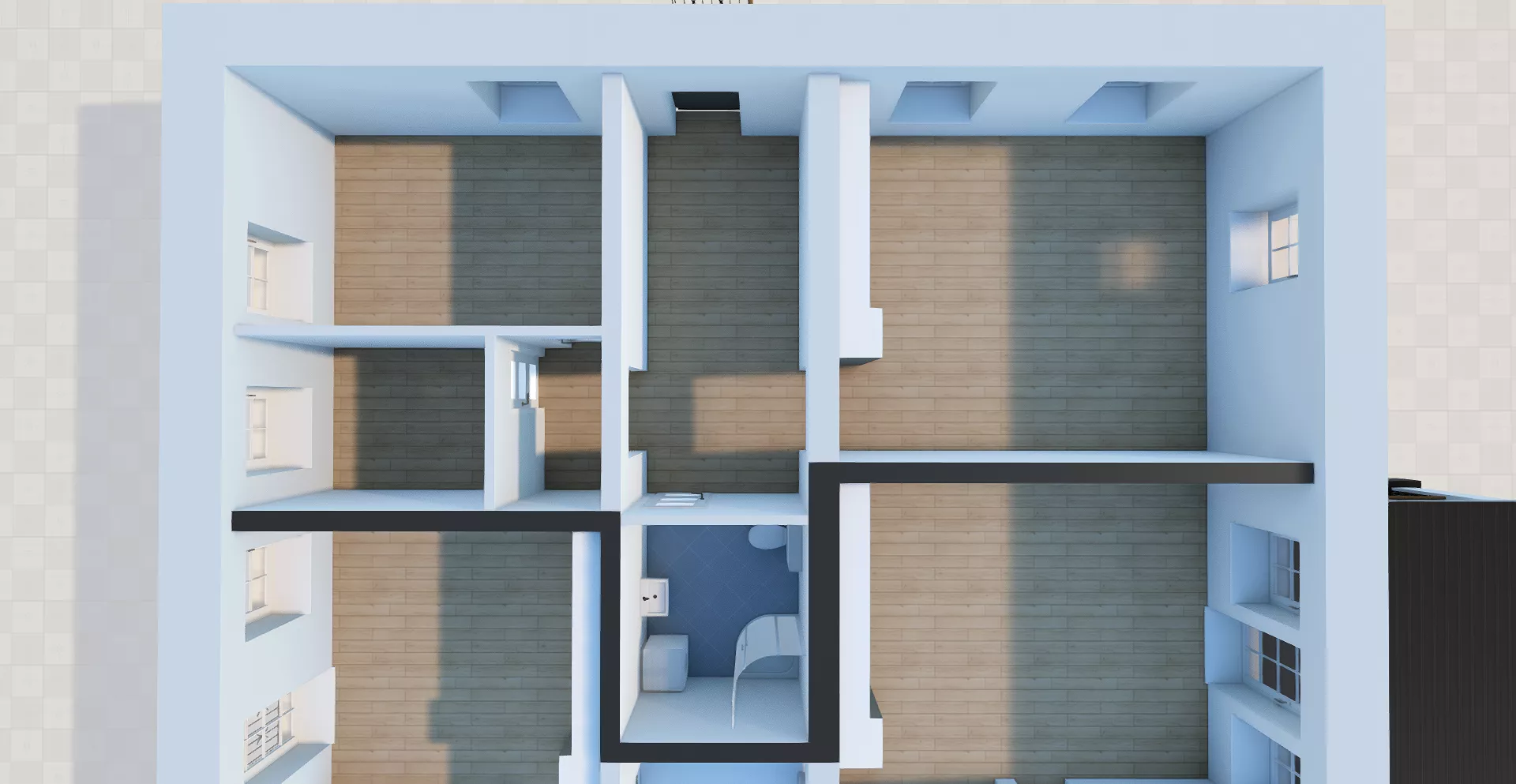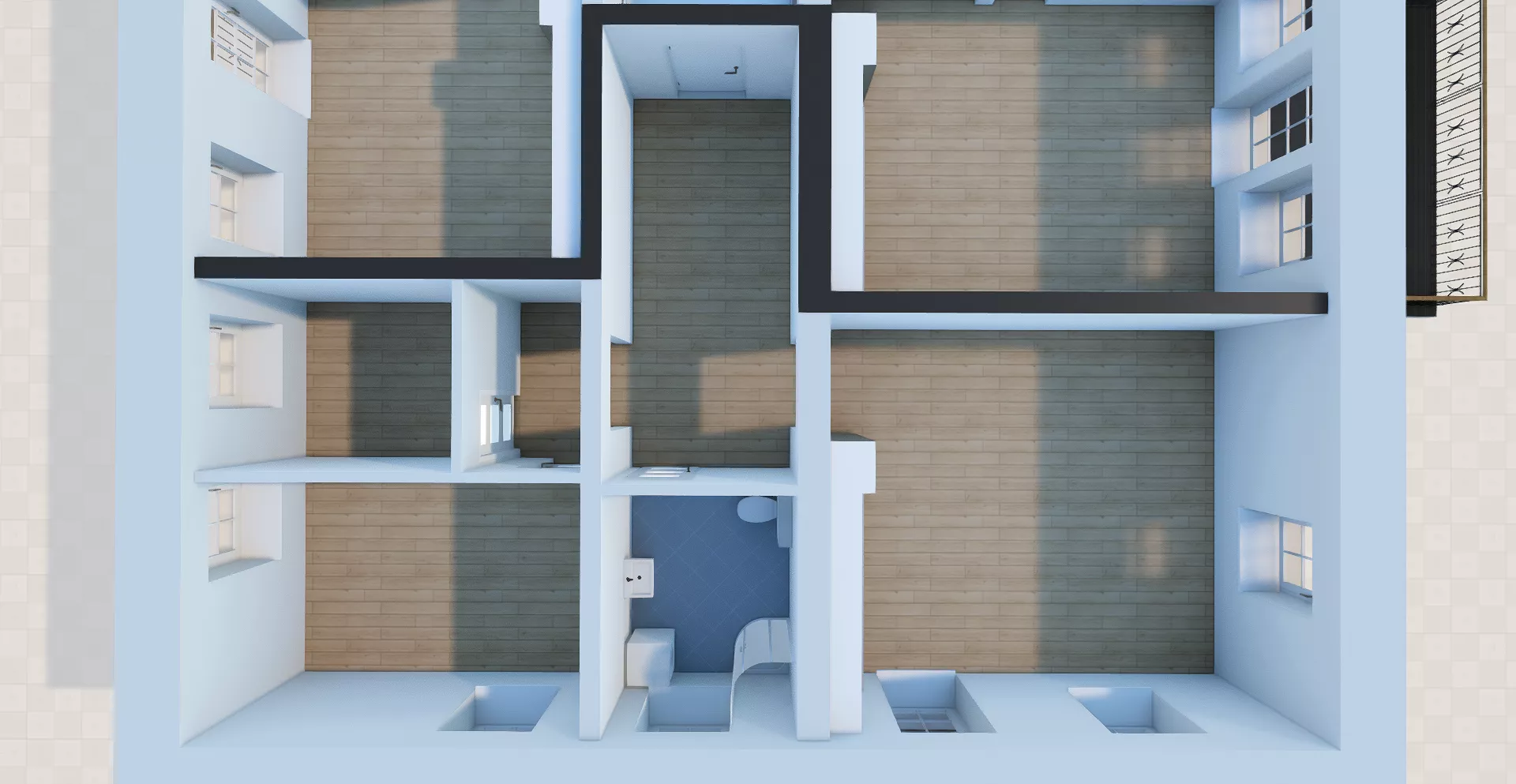 • łazienka z wc z oknem – 6,30 m2;