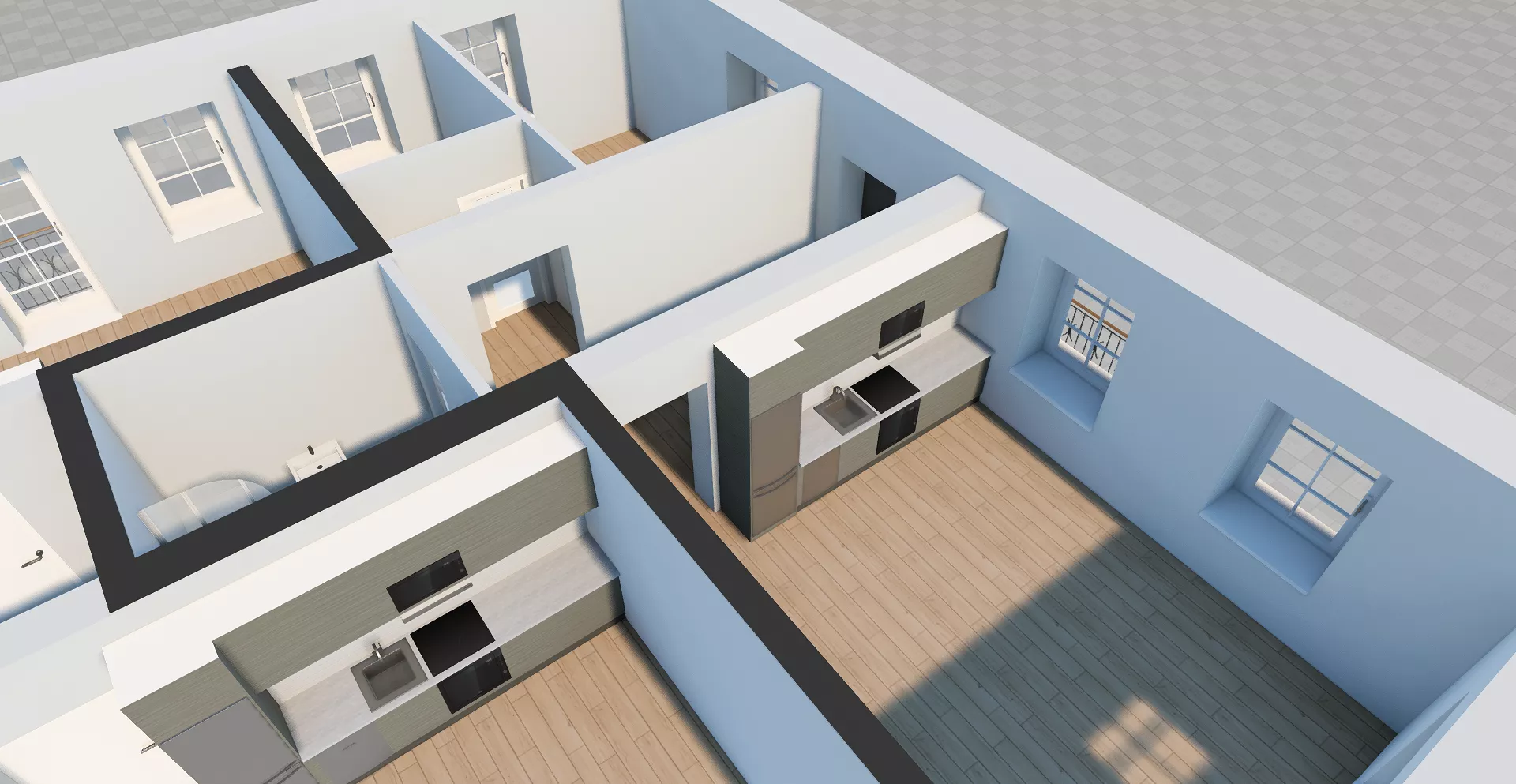 • pokój dzienny + aneks kuchenny – 28,54 m2 ;
